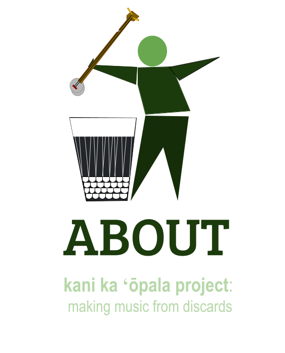 The kani ka ʻōpala project* began as an exercise in applied ecomusicology: how to repurpose everyday discards (ʻōpala) found on the streets of Oʻahu and encourage students to examine our consumptive habits. The initial result was MUS311, a 1-credit ensemble dedicated to exploring the music of Thailand with instruments built in class and sourced from salvaged items. It has since expanded into the projects featured on this site.