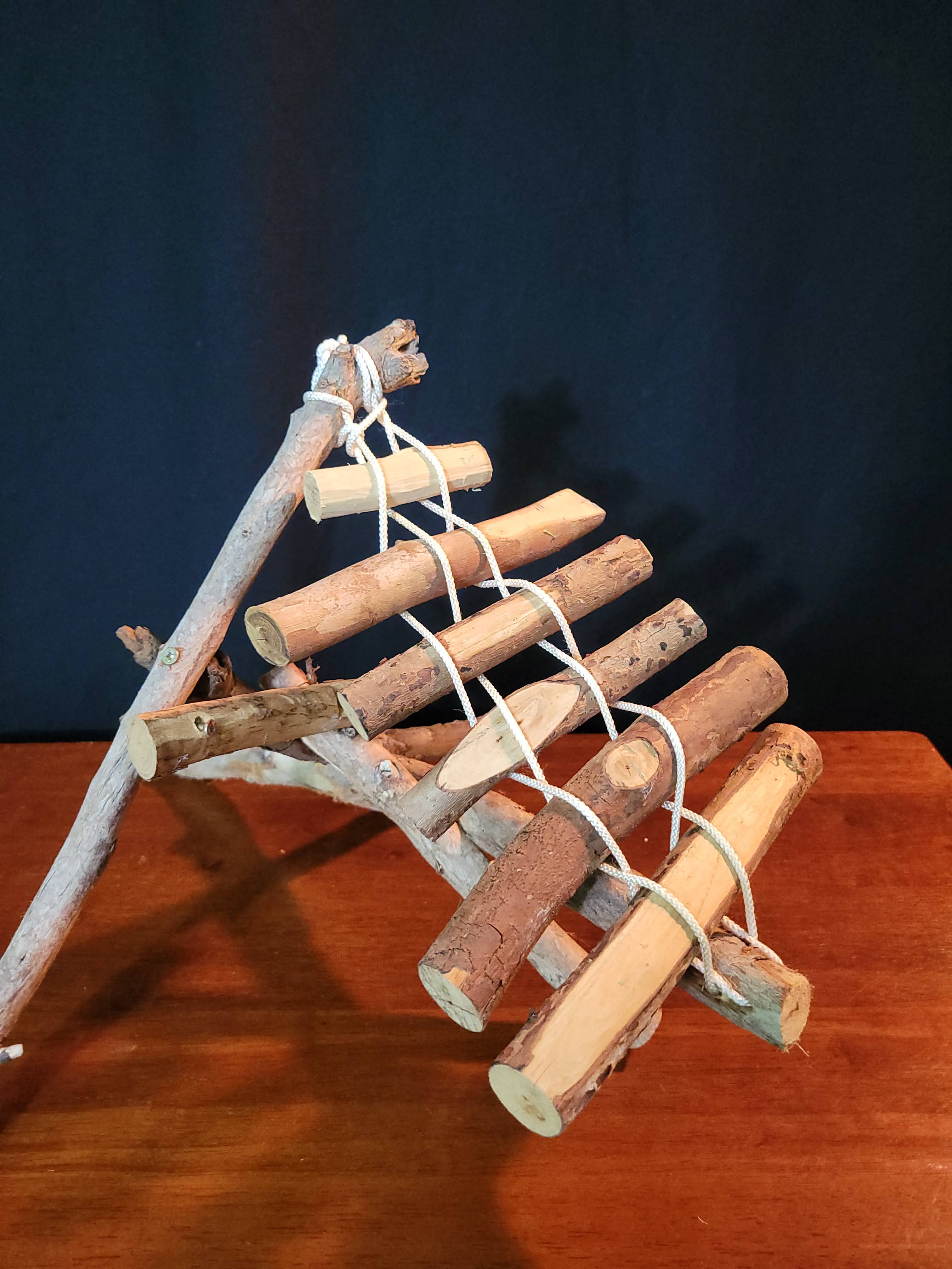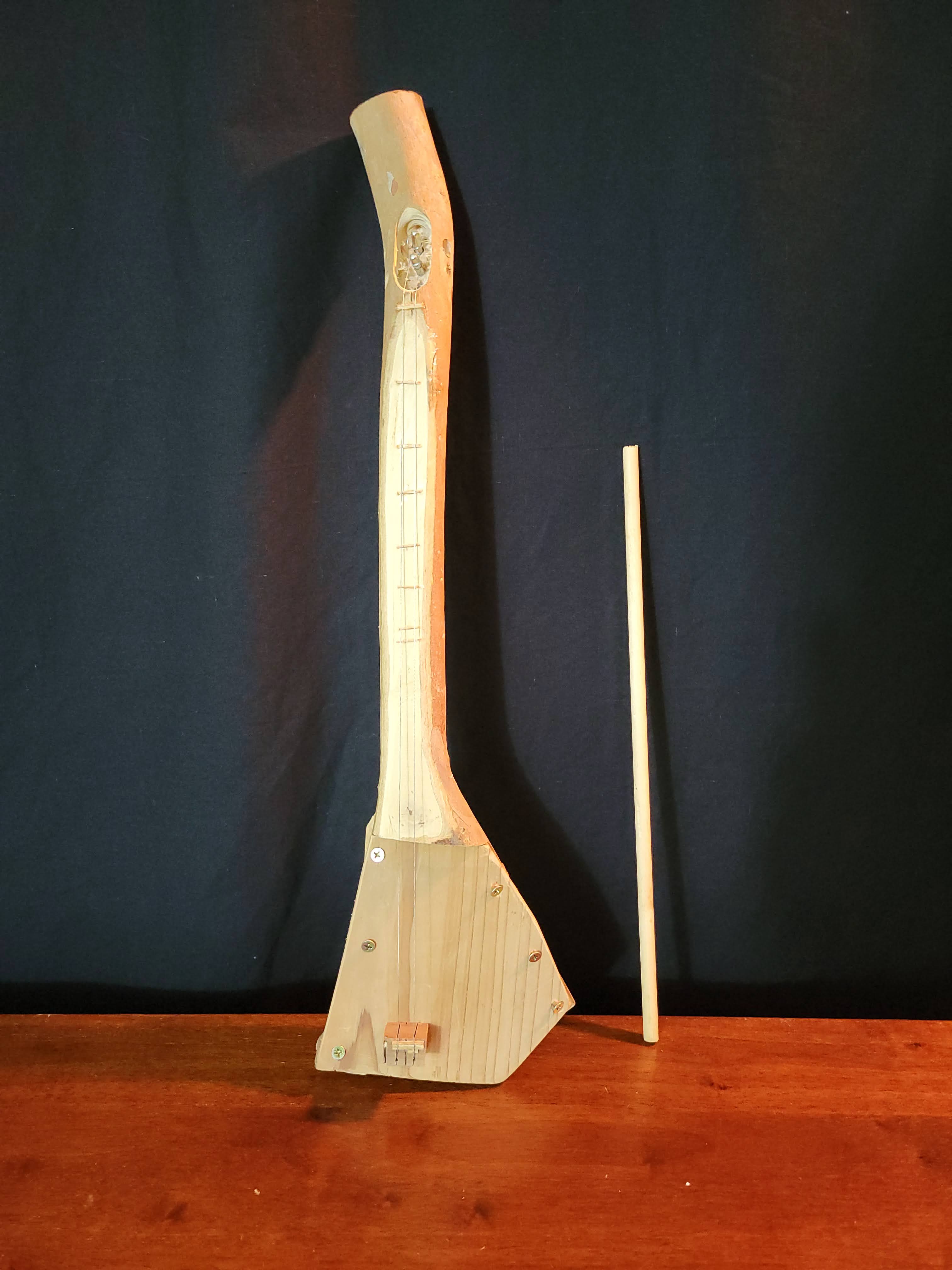 The general approach was to locate fallen guava branches on our upland hikes around the island. Working on my cramped lanai with minimal tools, we cobbled together a set of 9 demonstration instruments.